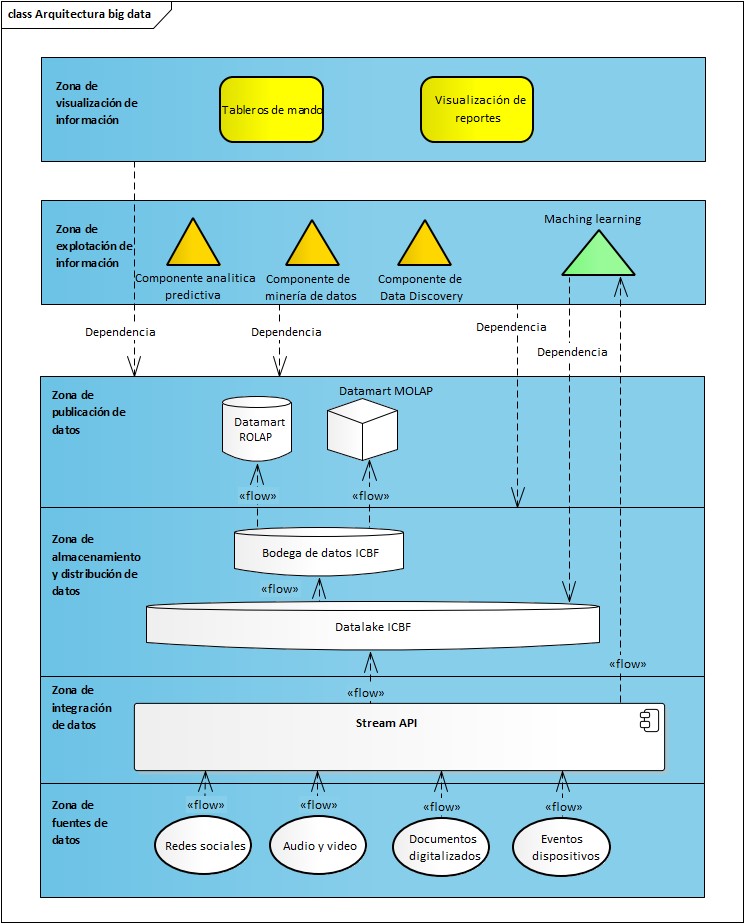 Para fortalecer las soluciones analíticas, se estableció una Arquitectura de Referencia que indica cómo deben ser las interacciones entre los principales subsistemas que manejan el ciclo de vida de los datos que suministran información con fines analíticos.