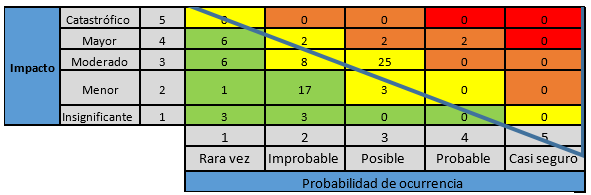Para la valoración de los riesgos identificados que afectan cada iniciativa se tuvieron en cuenta las siguientes tablas de probabilidad e impacto: